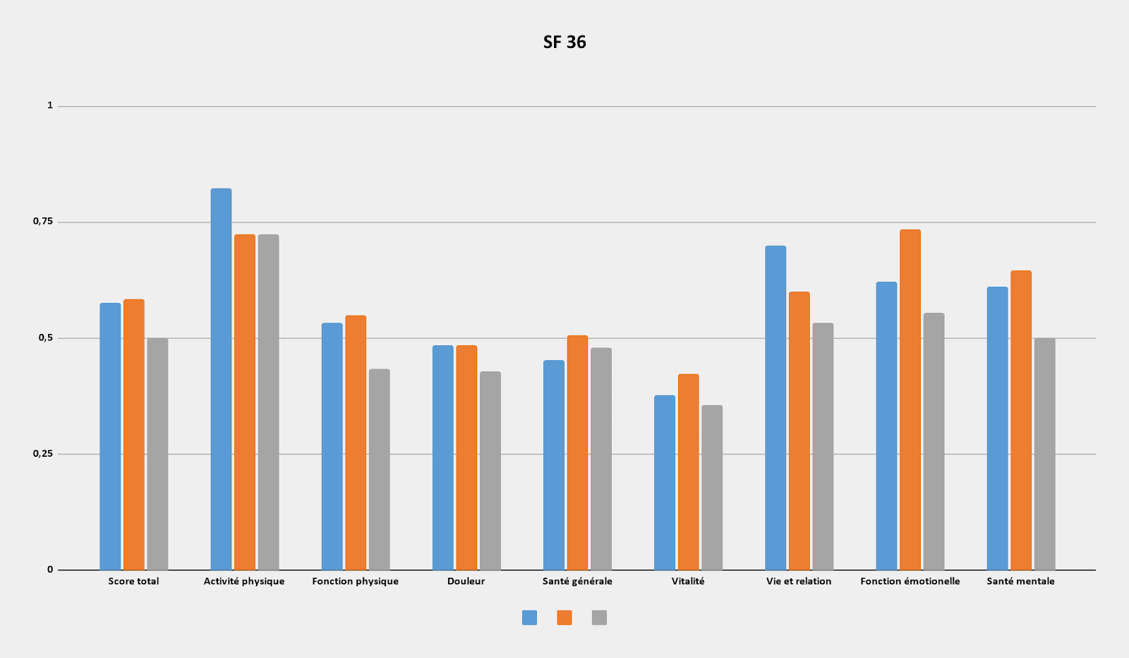 SF-36 pour évaluer la qualité de vie perçue sur huit dimensions (douleur, vitalité, rôle physique et émotionnel, santé mentale…). Les questionnaires étaient répétés en début, milieu et fin de prise en charge pour mesurer l’évolution.